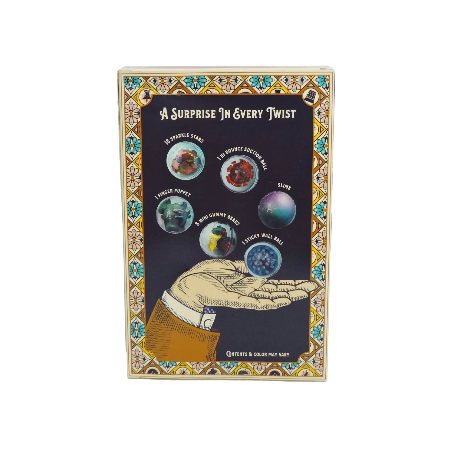 Unlock endless surprises with the Tiny Toys Teeny Tiny Treasure Trove! This mini gashapon machine dispenses 6 collectible capsules filled with fun treasures like mini slime, gummy bears, sparkle stars, hi-bounce balls, sticky wall balls, and a finger puppet. Twist, collect, reload, and play again for nonstop surprise fun!